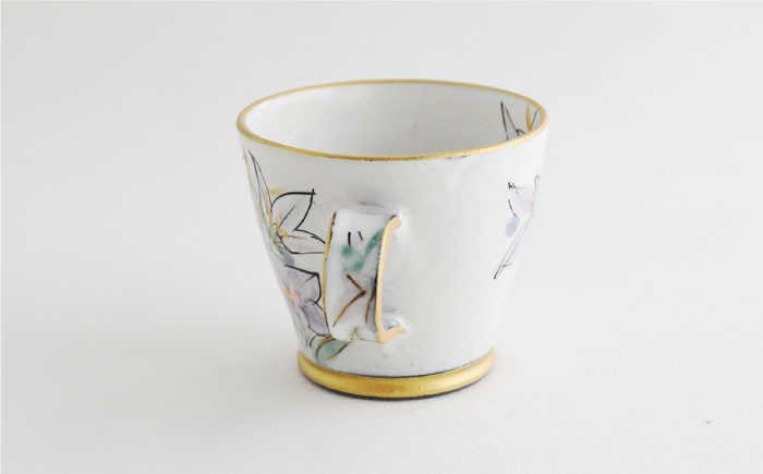 土岐市のはな桔梗を描いたマグカップ。一年の歴を意識して、12ヶ月の各月のイメージフラワーをデザインしたマグカップシリーズ。季節のお花を自由に華やかに描いたマグカップ。レンジで温めも大丈夫。しかも軽量。日々の暮らしに寄り添う、うつわです。花は、日本人にとってもロマンチックで癒されるモチーフ。老若男女問わずご好評いただいております。主にご自分の誕生日の花を選んでマイカップにして、カップの底に金彩の名入れをするサービスは、世界にひとつだけの私だけのカップという特別感を強め、喜ばれています。東京ドームテーブルウェアフェスティバルにてご好評いただいている、人気のシリーズです。