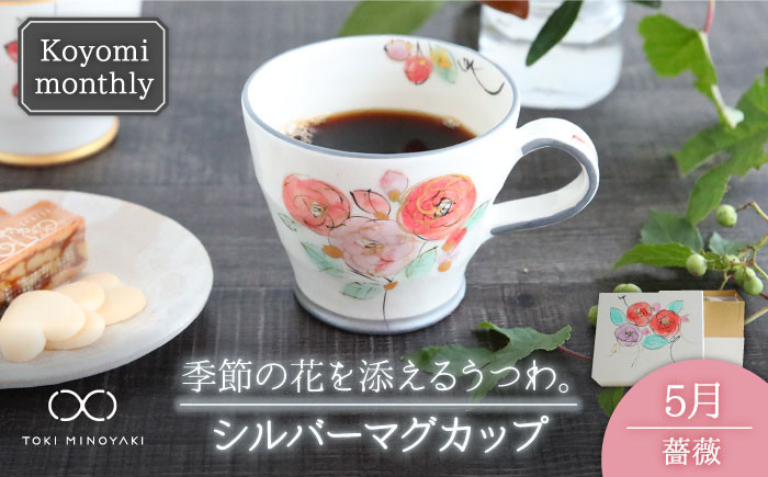 大切な記念日に贈りたくなる手描き花模様の名入れマグカップ。 【美濃焼】Koyomi monthly マグカップ (シルバーグレー)5月・薔薇【buzan 武山窯】【TOKI MINOYAKI返礼品】食器 コーヒーカップ ティーカップ [MBA029]