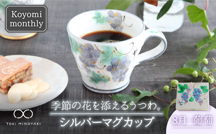 大切な記念日に贈りたくなる手描き花模様の名入れマグカップ。 【美濃焼】Koyomi monthly マグカップ (シルバーグレー)8月・葡萄【buzan 武山窯】【TOKI MINOYAKI返礼品】食器 コーヒーカップ ティーカップ [MBA032]