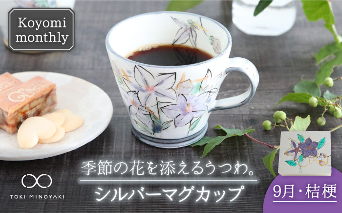 大切な記念日に贈りたくなる手描き花模様の名入れマグカップ。 【美濃焼】Koyomi monthly マグカップ (シルバーグレー)9月・桔梗【buzan 武山窯】【TOKI MINOYAKI返礼品】食器 コーヒーカップ ティーカップ [MBA033]