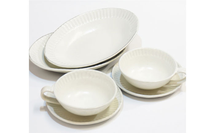 食卓を彩る和モダンな”しのぎ”模様のディナーセット 【美濃焼】粉引しのぎ ディナーセット【不動窯】食器 プレート スープカップ [MAR015]