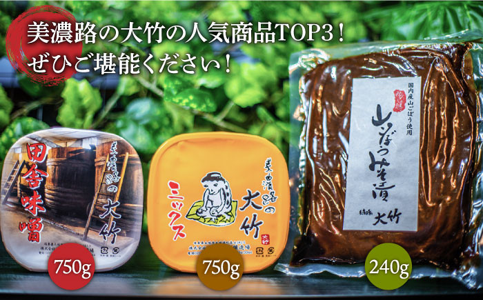 岐阜県土岐市で大人気の味噌2種と漬物をセットで! 【2種の 味噌 と 漬物 が楽しめる】美濃路セットA(赤味噌・合わせみそ・山ごぼうの味噌漬け)【株式会社大竹醤油醸造場】調味料 赤みそ つけもの [MAO005]