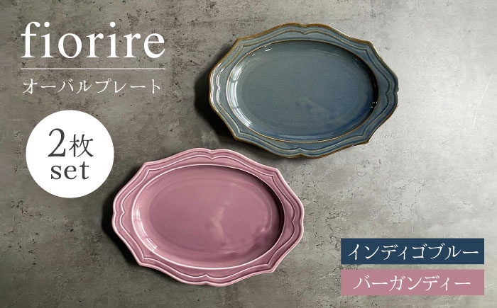 アンティークなレリーフが大人可愛い♪オーバルシリーズ 【美濃焼】fiorire-フィオリーレ- オーバルプレート 2枚セット(indigoblue×Burgundy)【Felice-フェリーチェ-藤田陶器】 [MBX002]