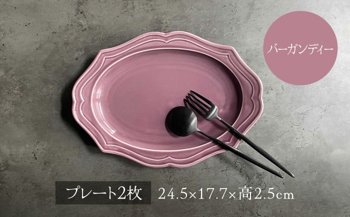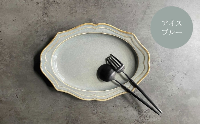 アンティークなレリーフが大人可愛い♪オーバルシリーズ 【美濃焼】fiorire-フィオリーレ- オーバルプレート × オーバルボウル 4点セット(Burgundy×iceblue)【Felice-フェリーチェ-藤田陶器】 [MBX009]