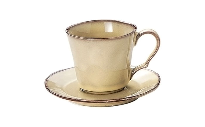 土色を連想させるエッジのワンポイントが、お料理を主役として引き立てるでしょう。カップ&ソーサーは、来客時に重宝するのはもちろん、お手入れしていただきやすい器なので、普段使いもしていただきやすく、いつものティータイムにふと手が伸びる器になるでしょう。