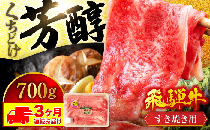 とろけるほど旨い!飛騨牛すき焼き用スライス 【3回定期便】飛騨牛 すき焼き A5ランク 700g【有限会社マルゴー】 和牛 霜降り 牛肉 [MBE017]