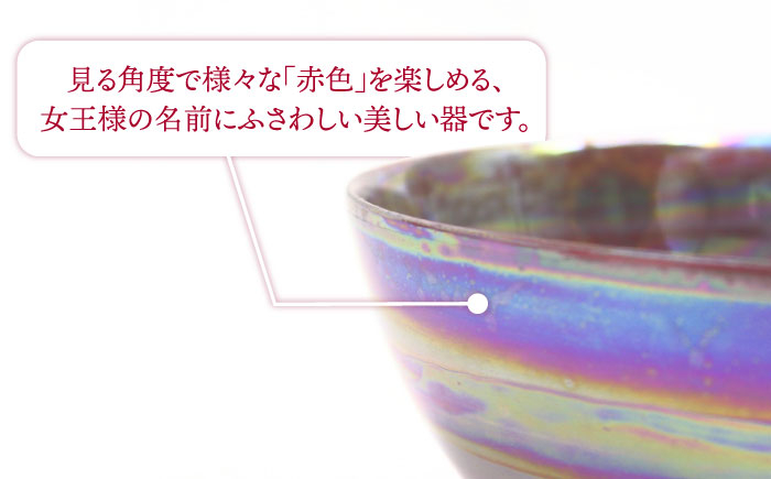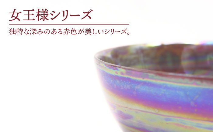 手にしてみると、見る角度によって変わる赤の色合いや光り方も楽しめる、女王様の名前にふさわしい美しい器です。