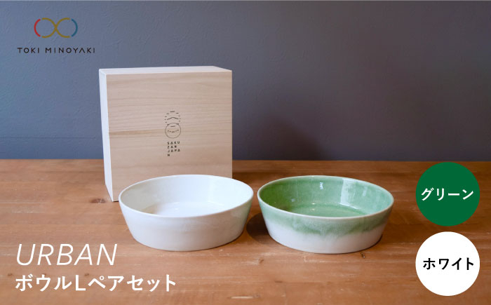 いつもの料理が格好良く見える 【美濃焼】URBAN ボウル L ペアセット グリーン&ホワイト【作山窯・SAKUZAN】【TOKI MINOYAKI返礼品】皿 プレート 食器 [MBJ008]