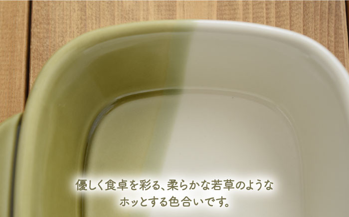 グラタンをサブメニューに。子供用にもOKのかわいいサイズ 【美濃焼】 グラタン皿 正角 バイカラー minoruba グリーン 4個セット 【EAST table】 [MBS046]