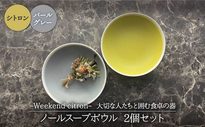 大切な人たちと囲む食卓の器 【美濃焼】Weekend citron-ウィークエンドシトロン- ノール スープボウル 2個セット(シトロン×パールグレー)(レンジ対応/食洗器対応)【Felice-フェリーチェ-藤田陶器】 [MBX026]