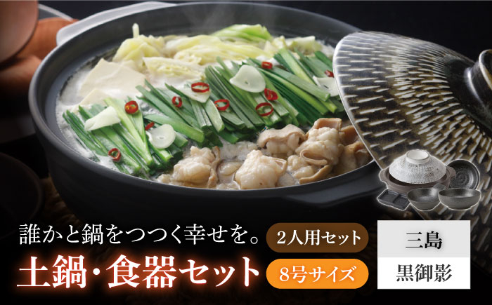 蓋の柄が選べる!業務用土鍋をご自宅に! 【美濃焼】8号土鍋と食器2人用セット フタ・三島/鍋小物・黒御影 (昭和製陶)【cierto】 食器 鍋 とんすい [MCD174]
