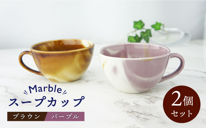 2個セット 引き寄せられるマーブル模様のスープカップ 【美濃焼】Marble スープカップ 2個セット (ブラウン・パープル)【佐橋製陶所】 [MAF003]
