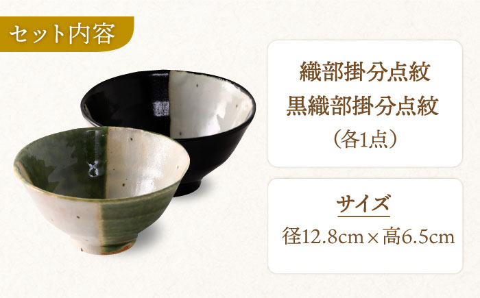 食卓に馴染む、モダンなお茶碗のペア 【美濃焼】織部・黒織部掛分点紋 ペア 飯碗 【不動窯】食器 茶碗 セット [MAR022]