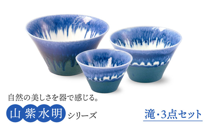 自然が魅せる一期一会の美しさを釉薬の流れで表現した器 【美濃焼】山紫水明 滝 S/M/L3個セット【伸光窯】 食器 ボウル どんぶり [MAQ047]