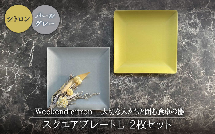大切な人たちと囲む食卓の器 【美濃焼】Weekend citron-ウィークエンドシトロン- スクエアプレートL 2枚セット(シトロン×パールグレー)【Felice-フェリーチェ-藤田陶器】 [MBX034]