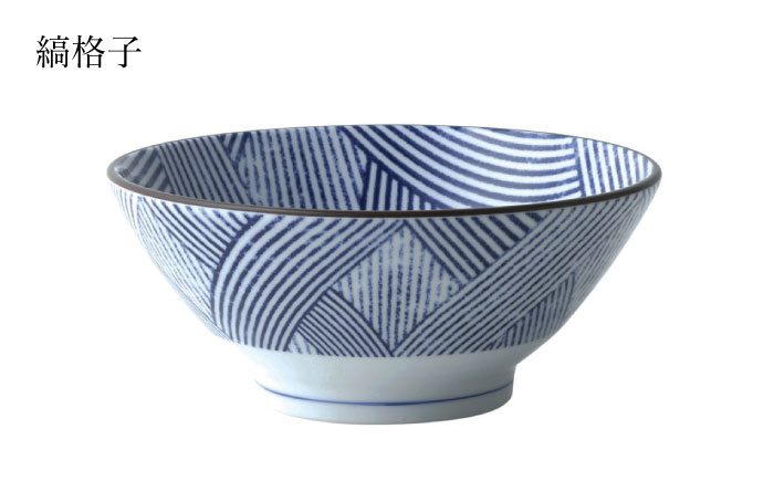 様々な藍色と文様が織りなす魅力的な染付のうつわ 【美濃焼】染付のうつわ 5.8そば丼4個セット むじな菊/変わり菱紋/縞格子/とちりうず(昭和製陶)【cierto】食器 丼 うつわ [MCD032]