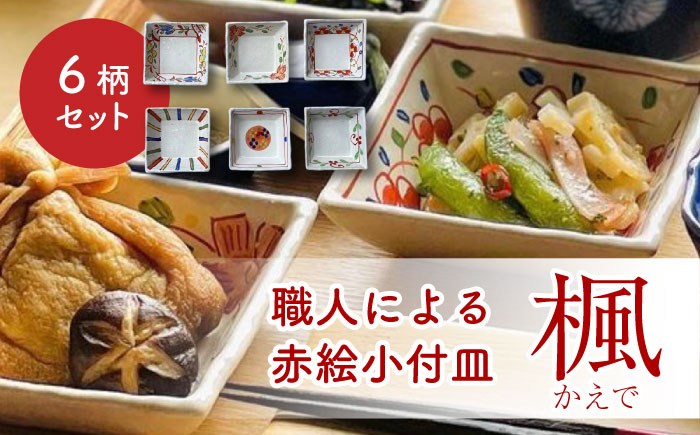 繊細な絵付けがかわいい小皿セット 【美濃焼】楓 赤絵小付皿 6柄セット【ヤマ吾陶器】食器 角皿 豆皿 [MCE003]