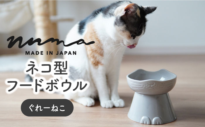 \にゃんこが喜ぶ/猫ちゃん専用フードボウル 【美濃焼】 NNMA 猫型 フードボウル (ぐれーねこ) 【株式会社二幸】ペット用品 猫用食器 餌入れ [MCZ020]