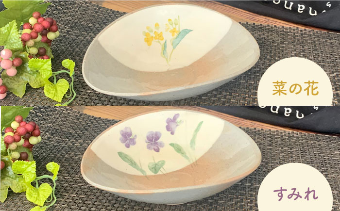 れんげ、すみれ、菜の花、すずらん…どの花も優しい色合いです。ほっこりした土物の器によく合います。
