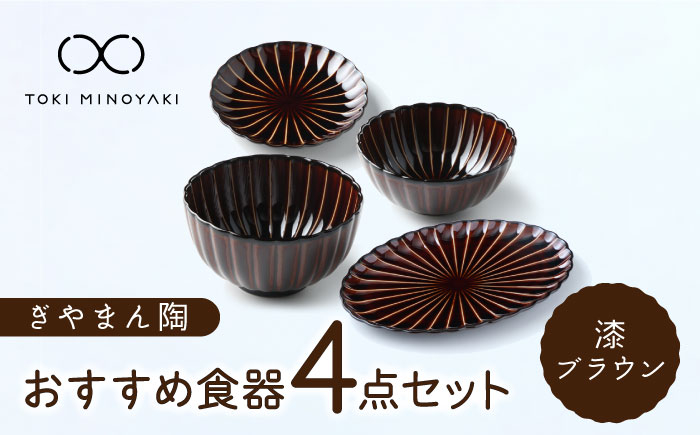カネコ小兵スタッフおすすめ! 【美濃焼】ぎやまん陶 おすすめ食器 4点セット 漆ブラウン【カネコ小兵製陶所】【TOKI MINOYAKI返礼品】プレート ボウル 丼 [MBD124]