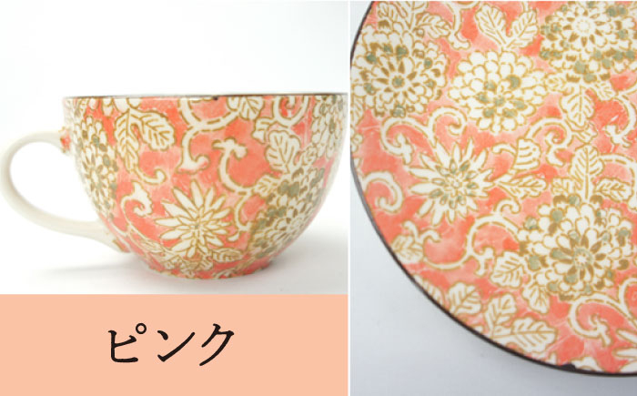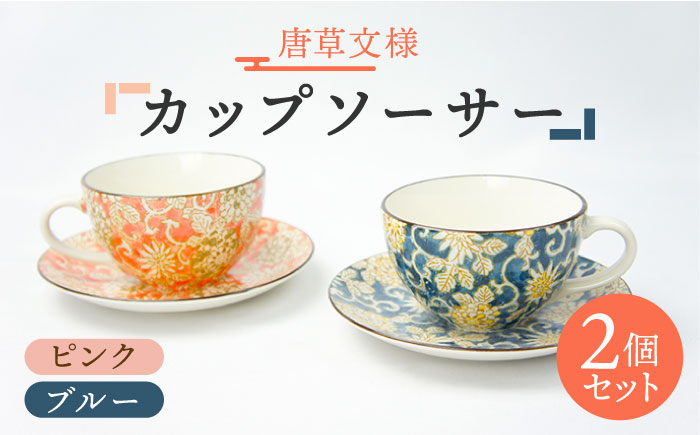 お客様用にもピッタリ♪珈琲カップや紅茶カップとして 【美濃焼】唐草文様 カップソーサー ペアセット (ピンク・ブルー)【佐橋製陶所】 [MAF010]