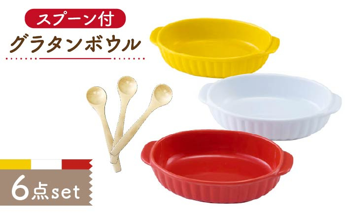 検索ワード:食器 皿 グラタン皿 ボウル グラタンボウル 耐熱 耐熱食器 オーブン対応 取手付 スプーン イエロー レッド 赤 ホワイト 白 新居 新生活 送料無料