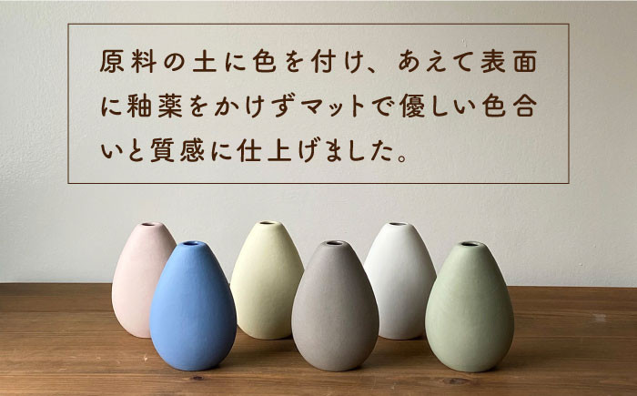 ブランド名の「piccola」とは、イタリア語で「おチビちゃん」。 造られる一輪挿しを「かわいい我が子」の様に思い、愛情を込め名付けました。原料の土に色を付け、あえて表面に釉薬をかけずマットで優しい色合いと質感に仕上げました。