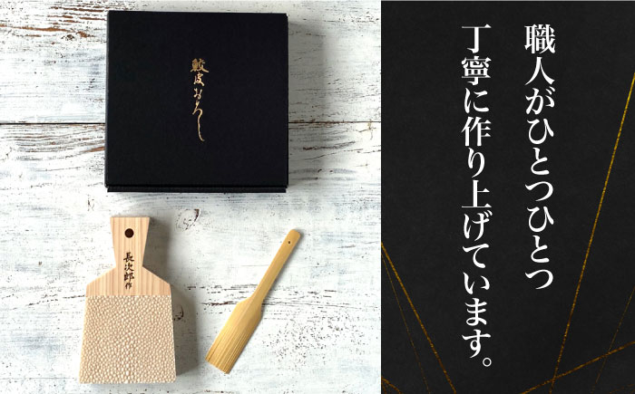 こだわり 料理道具 わさび 薬味 おろし器 プロ愛用 手作り 【鮫皮おろし】長次郎 大 竹スクレーパー ギフトセット【ワールドヴィジョン】調理器具 キッチン用品 おろし器 [MDV001]