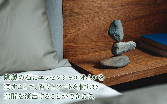 絶妙なバランスで積まれた石は、神秘的でまるで「石のオブジェ」のよう。陶製の石にエッセンシャルオイルを滴すことで、ほのかに香りが広がり、香りとアートを愉しむ空間を演出することができます。