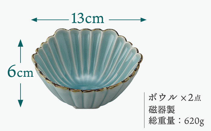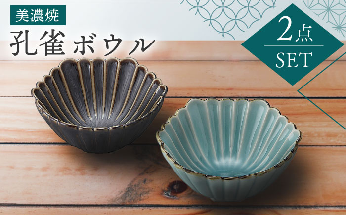 孔雀の羽をデザインしたシンプルな器 【美濃焼】孔雀 ボウル ペアセット【株式会社二幸】食器 鉢 デザート [MCZ037]