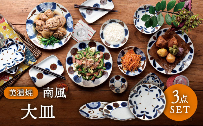 自然と共に育まれたやちむんテイストの器 【美濃焼】南風 大皿 3枚セット【株式会社二幸】食器 皿 プレート [MCZ042]