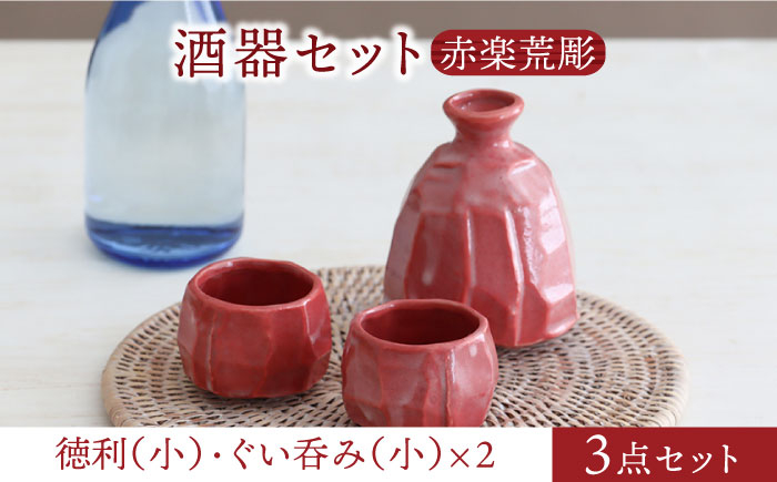 大人かっこいい晩酌タイムに 【美濃焼】酒器セット 赤楽荒彫 徳利(小)・ぐい呑(小) 3点【器の杜】食器 酒器 ぐい呑み [MDT019]