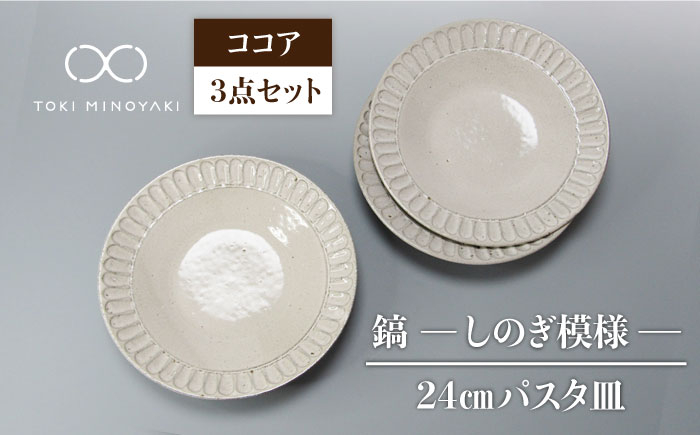 パスタの一点盛から、お肉と野菜の盛り付けにまで使いやすい 【美濃焼】<おしゃれな食卓に>鎬 24cm パスタ皿 ココア3枚セット【藤山窯】【TOKI MINOYAKI返礼品】 [MAH064]