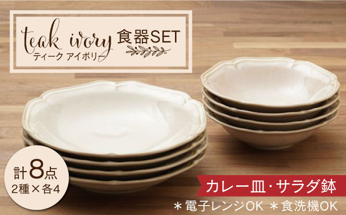 ■ティーク アイボリー カレー皿 サラダ鉢 食器セット(各4点合計8点)