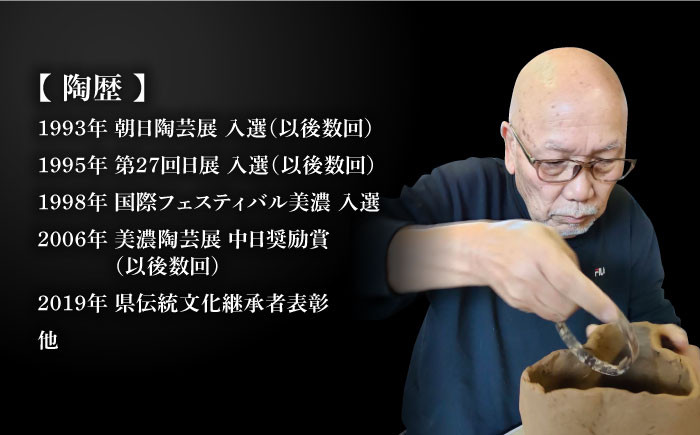 1993年 朝日陶芸展 入選(以後数回)1995年 第27回日展 入選(以後数回)1998年国際フェスティバル美濃 入選2006年美濃陶芸展 中日奨励賞(以後数回)2019年 県伝統文化継承者表彰他