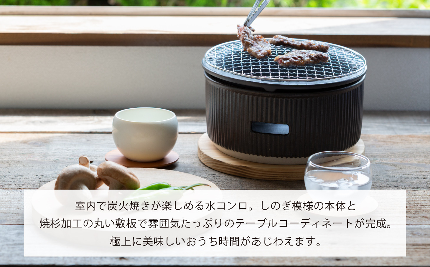 室内で炭火焼きが楽しめる炭焼き水コンロ。