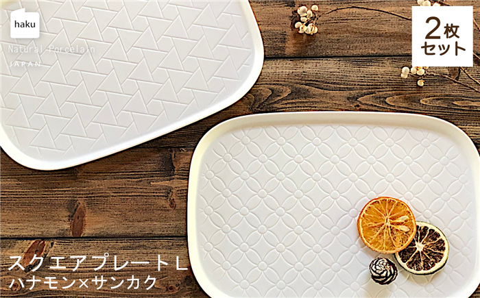 凸凹な器 【美濃焼】ラージスクエアプレート L ペアセット 2枚 ハナモン×サンカク【カネ一古林商店】食器 プレート かわいい [MEG010]