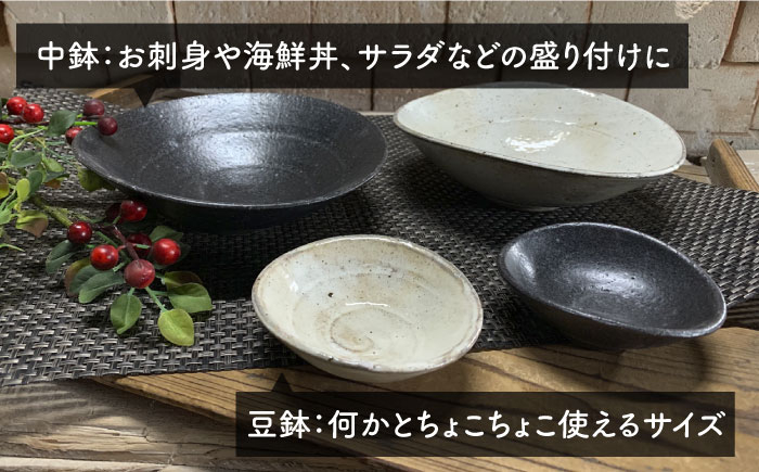土本来の味わいを楽しめる、荒土シリーズ。モノトーンでオシャレな黒釉薬・粉引釉薬のセットです。