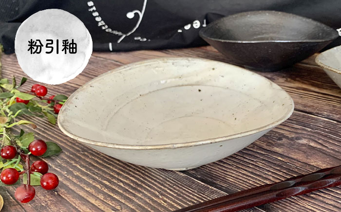 その為焼き上がった器は荒土に混ぜた鉄粉が所々にでたおもしろく味わいのある焼き上がりになっていますお料理が映えるマットな黒釉薬と優しい色合い粉引釉薬のセットです。