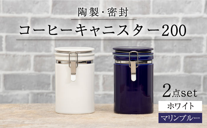 日本製ZERO JAPANオリジナル陶製密封キャニスター 【美濃焼】コーヒーキャニスター200 2個セット ホワイト×マリンブルー【ZERO JAPAN】 [MBR145]