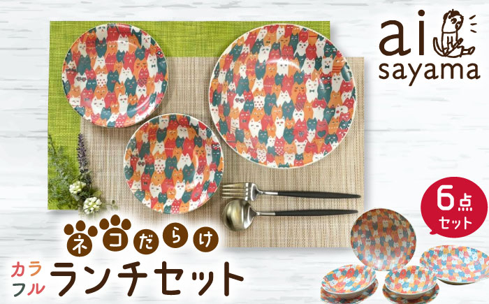 人気 【美濃焼】愛Sayamaネコだらけカラフルランチセット6P【陶友 長江商店】食器 プレート ボウル [MCO016]
