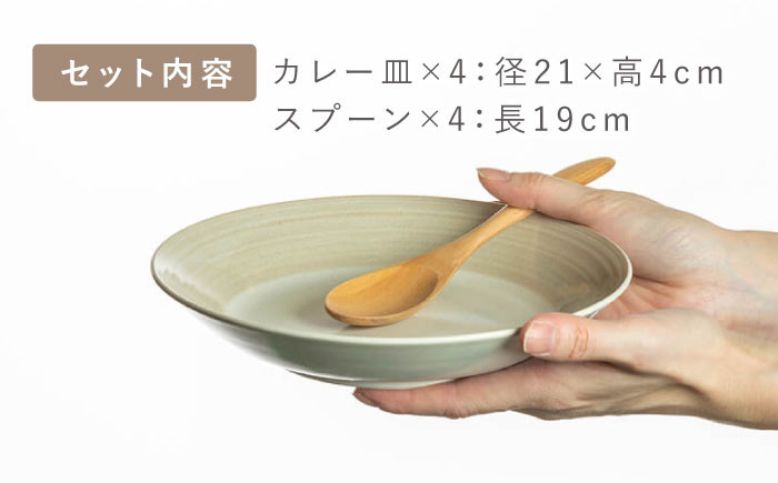 シンプルでナチュラルなデザインが人気です。 【美濃焼】Casa カレー皿 セット 木製スプーン付【陶土う庵】(3262-0186)食器 深皿 プレート [MBY112]