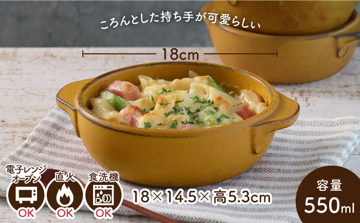 ころんとした持ち手が可愛らしい小ぶりなグラタン皿です。