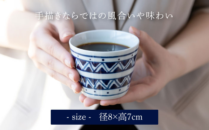かわいらしいパターン柄や植物柄を、染付で施したフリーカップ5柄セットです。