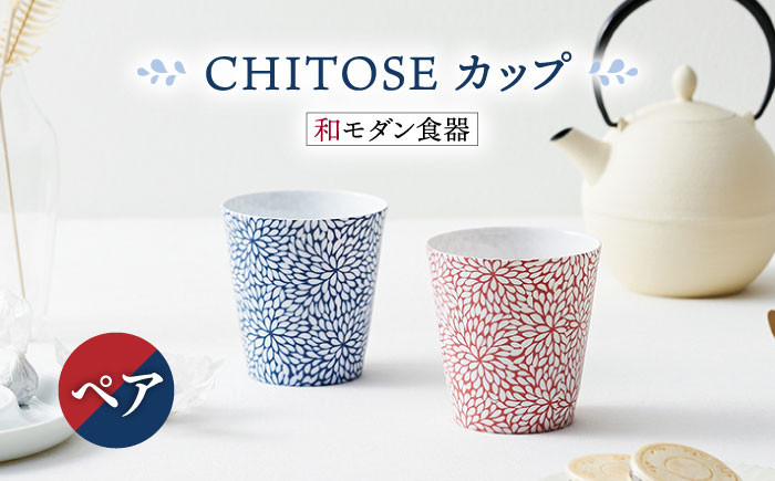 透き通る菊の絵柄が美しい 【美濃焼】CHITOSE カップ ペアセット【株式会社二幸】食器 湯呑 コップ [MCZ063]