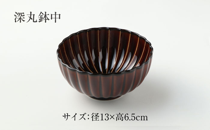 【美濃焼】ぎやまん陶 深丸鉢 小 ペアセット 漆ブラウン【カネ…
