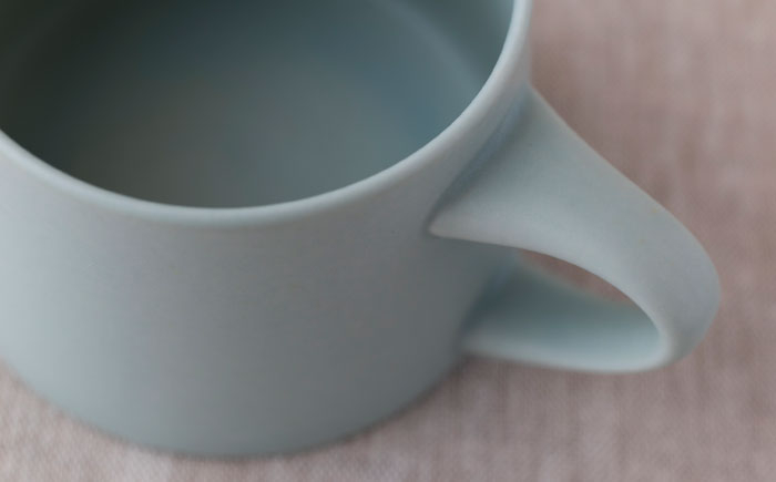 マットなニュアンス色のマグカップです。毎日つい手に取ってしまうような使い心地の良さにこだわり、ひとつひとつ手しごとで薄く、軽く仕上げています。
