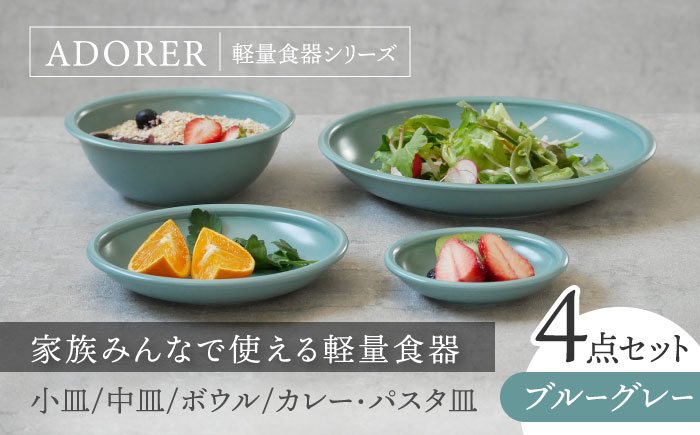 軽量でおしゃれな食器 【美濃焼】食器4点セット アドレ 4種各1点ずつ ブルーグレー【EAST table】 [MBS095]