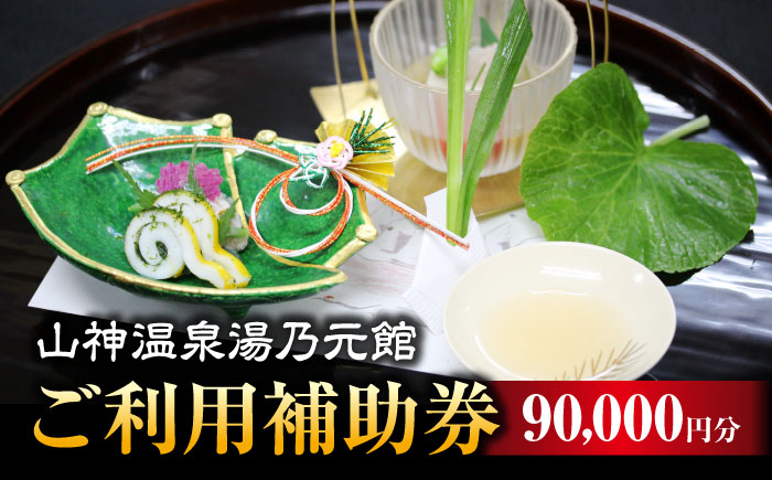 | 容量 | 「山神温泉湯乃元館」のご宿泊またはお食事に ご利用可能な90,000円分の補助券です。 補助券は換金・転売不可 ※ご予約日時は余裕をもってご指定ください。 |