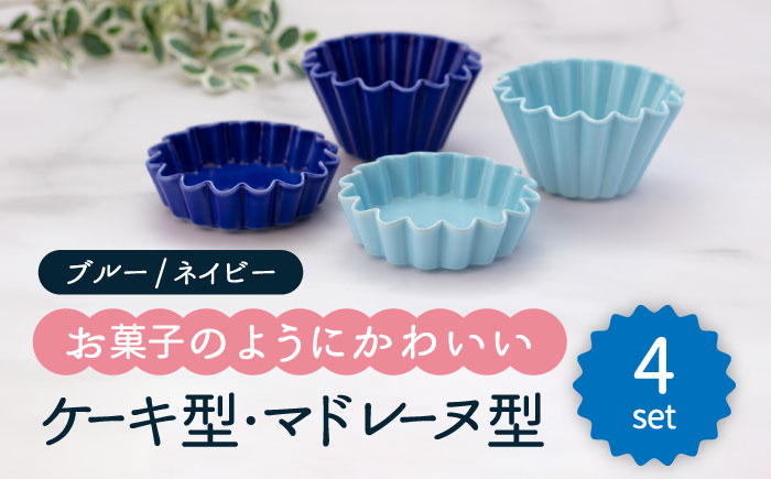 お菓子のようにかわいい食器セット 【美濃焼】ケーキ型・マドレーヌ型 2色4点セット(ブルー・ネイビー)【ヤマ忠木股製陶】食器 プレート ボウル [MDB023]